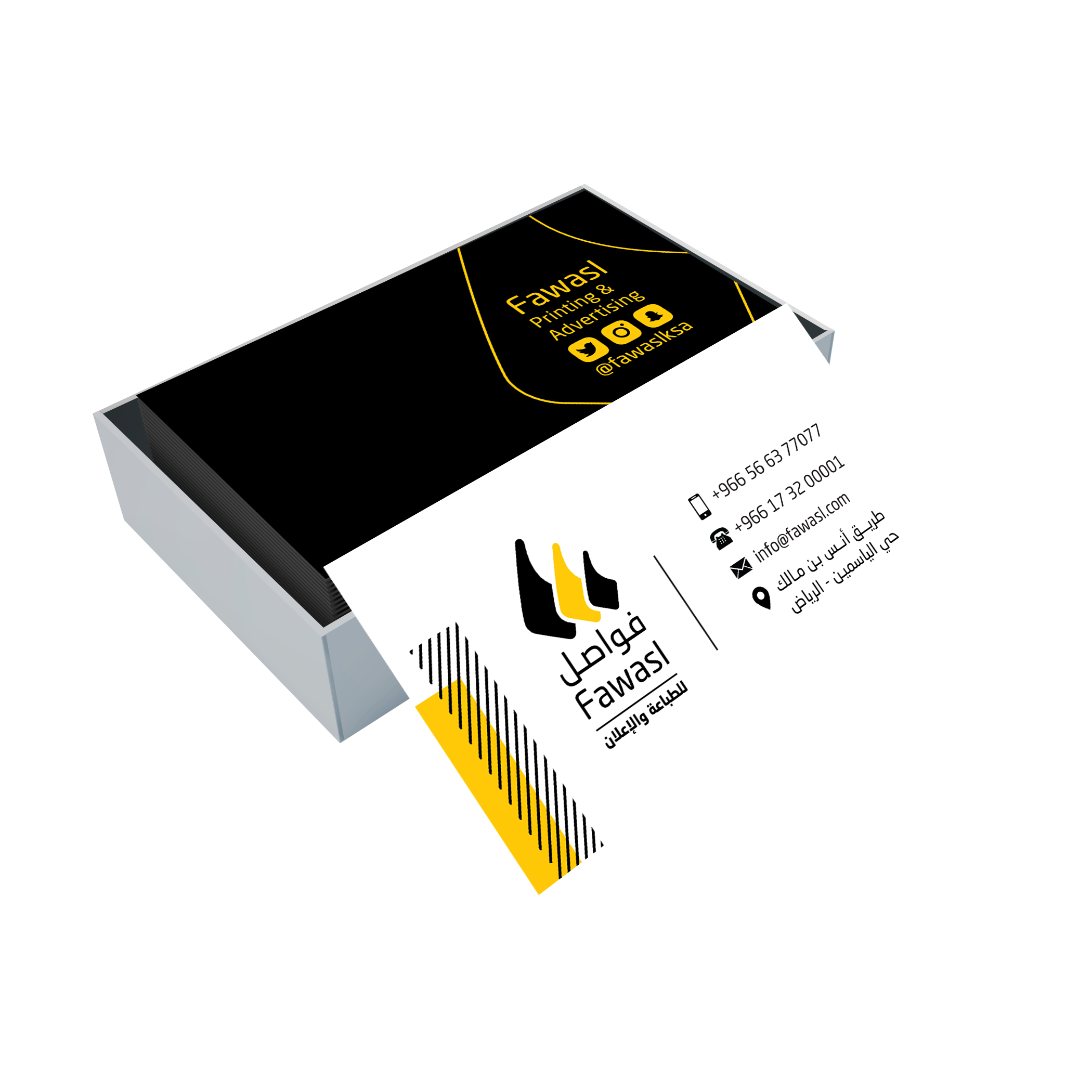كرت شخصي بطاقة احترافية تعكس هويتك وتفاصيل عملك مصنوع من ورق كوشيه 350 جرام مطفي مما يضمن جودة عالية ومظهر أنيق